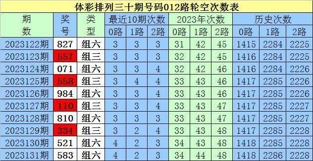 开奖回顾:排列三第2023131期奖号为:583,号码012路比为1:0:2。