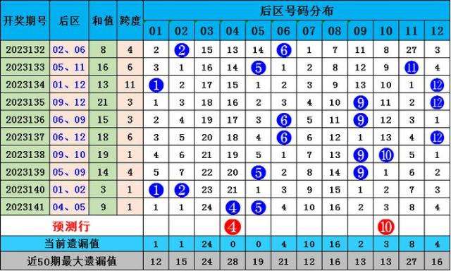大乐透后区分析: