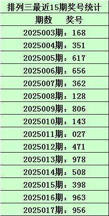 开奖回顾:排列三第2025017期开出奖号:956,其类型为:组六,直选形态为:奇奇偶、大大大、020路、热温温、合质合。