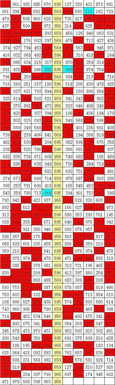 在以上统计表中,组选号码569开出之后,其下期豹子号码出现1次,组三号码出现12次,组六号码出现39次。其中,下期奖号有21期无重号,有31期开出重号,本期预计重号开出,看好开出组六号码。