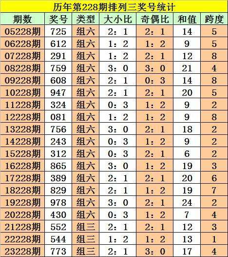 排列三第2023228期奖号:773,和值17,跨度4,大小比2:1,奇偶比3:0。