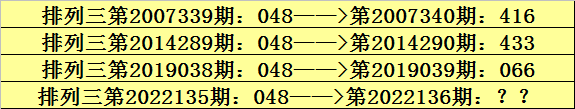 开奖回顾:体彩排列三第2022135期奖号为:048。和值为:12,跨度为:8。