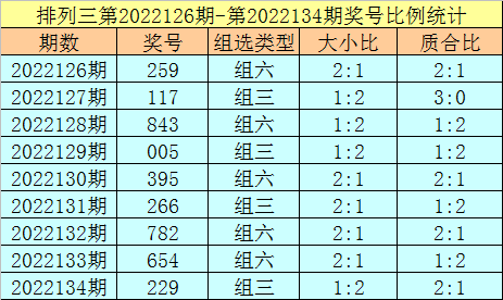 百位:大小比为0:3,奇偶比为0:3,本期参考号码5。