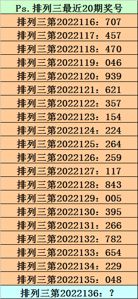 第2022135期排列三奖号为048,历史上该号码直选出现4次,下期奖号分别为:416、433、066。