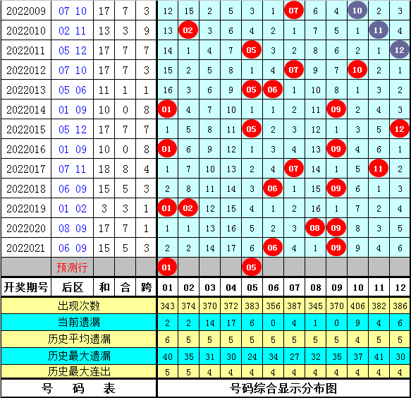 后区号码:上期为一奇一偶组合,本期重点关注奇数热出,看好全奇开出,参考号码:01 05。