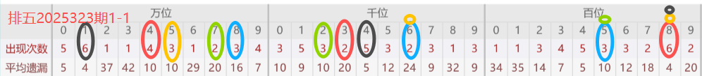- 各位置出现频率:查看近30期数据,万位1出现6次,千位4出现5次,百位8出现6次,十位3出现3次,个位8出现2次。