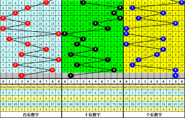 百位:下期开奖百位以1路和2路号码为主,0路号码没有出现,表现非常冷,本期注意0路号码回补,参考号码3。