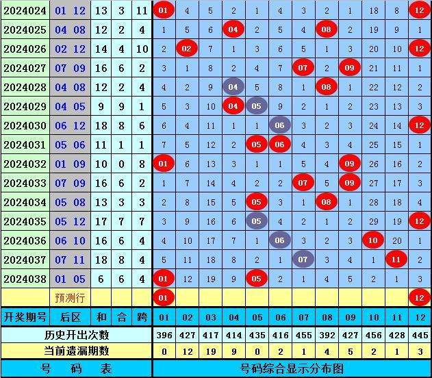 后区分析:上期后区开出全小组合:01+05,最近10期后区奖号大小比为9:11,本期后区注意一大一小组合回补,关注两码01、12。
