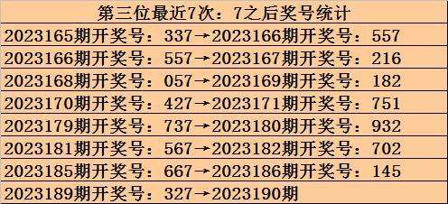 第三位冷码判断:上期开出奖号7,遗漏值为3期,目前该位最冷号码为4,遗漏值为26期,本期预计4解冻。