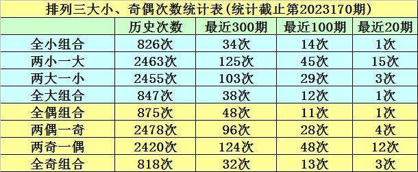 上期回顾:排列三第2023170期奖号:082。类型:组六,奇偶形态:偶偶偶,大小形态:小大小,和值:10,跨度:8。