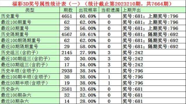 上期奖号:福利彩票3D第2023210期开出奖号681。