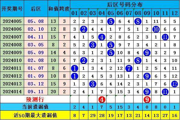前区第二位:上期开出奖号05,为奇数前区,近10期第二位奖号5期开出奇数,5期开出偶数,奇数表现比较均,本期前区第二位推荐奖号14。