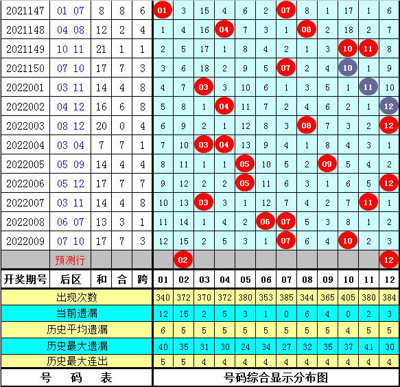 6、在历史同期第010期开奖中,后区全小组合出现3次,一大一小组合出现8次,全大组合出现4次,本期后区注意一大一小组合出现,关注号码02、05、10、12。
