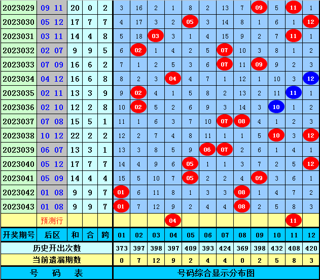 后区分析:上期后区两码开出01+08,为一大一小组合,近50期后区全大组合出现13次,全小组合出现9次,一大一小组合出现28次,,近10期后区全大组合出现2次,全小组合出现0次,一大一小组合出现8次,本期预计后区一大一小组合再出,参考号码04、11。