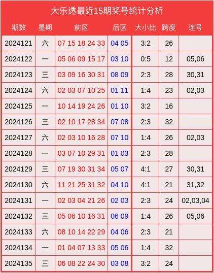 上期回顾:大乐透2024135期开出奖号:前区06、08、22、24、30,后区03、08。