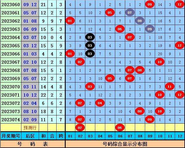 后区分析:上期后区开出2路+0路号02和09,最近30期后区奖号012路比为19:19:22,最近10期后区奖号012路比为6:7:7,本期后区注意号码01、02、06、07、08,单挑两码组合02、06。