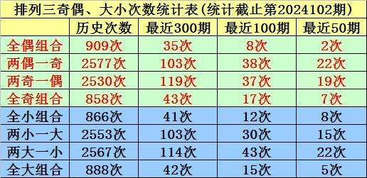 大小、奇偶分析:在连续40期奖号中,全小出现7期,当前遗漏1期、两小一大出现13期,当前遗漏0期、两大一小出现18期,当前遗漏2期、全大出现2期,当前遗漏23期,本期看好开出两小一大;全偶有2次,目前遗漏12期、两偶一奇有22次,目前遗漏1期、两奇一偶有19次,目前遗漏0期、全奇有7次,目前遗漏2次,本期预计出现两奇一偶。
