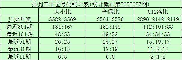 在连续11期奖号中,该位奇偶比为5:6,奇数出现较少,本期适当关注奇数回补;