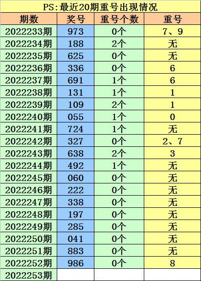 开奖回顾:福彩3D第2022252期开出奖号:986。