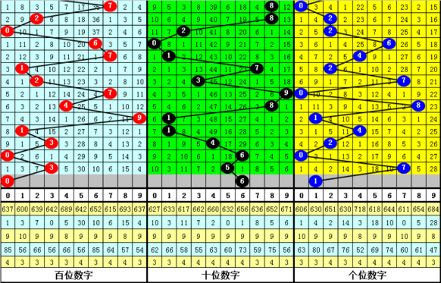 其中,组三开出6次,组六开出13,单选号码0-9分别出现: