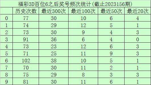 百位杀号:上期百位开出号码6,历史上百位号码6已开出788次了,最近100次百位号码6出现之后,其下期各号码频次分别为:号码1、4出现12次,5、7、9出现11次,0、6出现10次,2出现9次,8出现8次,3出现6次。