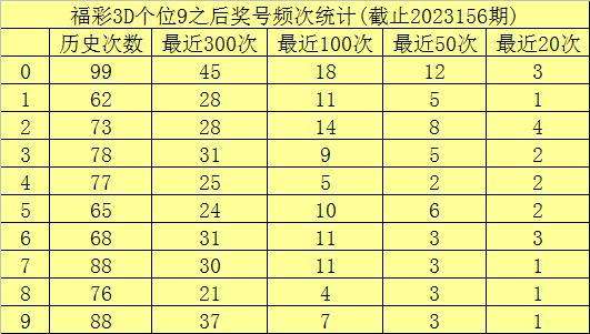 开奖回顾:福彩3D第2023156期奖号为689,奖号类型开出:组六、大大大、偶偶奇,和值为23。