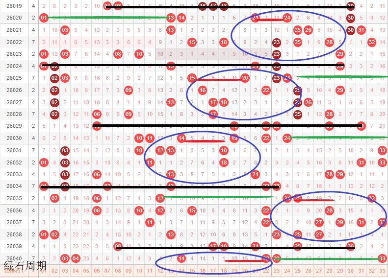 如图所示:体现的是3个局部走势的发展周期,圆圈为密集处的填空,本期定性为新局部走势3期,修饰真实目的空间主力填空第1期,界定本周期蛋跨13-23,真实空间24-32,大小号均衡或者大号多开。主力形成312 213的区间比,防守132 123的区间比。
