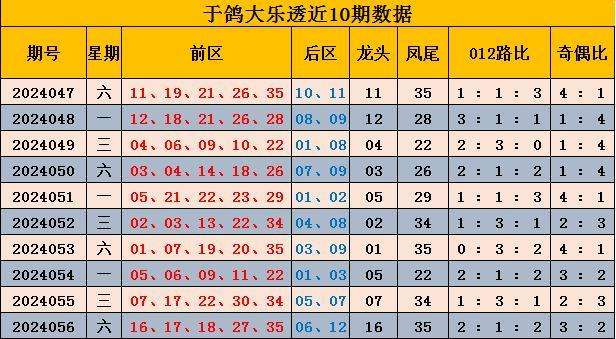 057期于鸽大乐透预测奖号:后区大小推荐