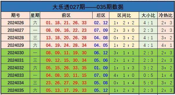 036期魏强大乐透预测奖号:大小比冷热比分析