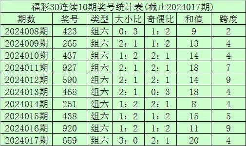 开奖回顾:福利彩票3D第24017期奖号开出659。奖号类型为组六,奇偶形态为偶奇奇,大小形态为大大大。