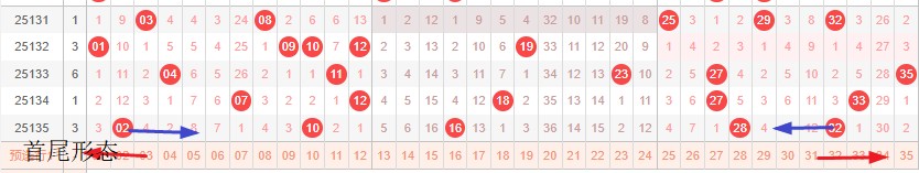 如图所示:首尾制约平衡组范围依次为:推推推,缩推? 本期形态范围优先选择红色拉伸首尾。由于上期号码处在首尾换4然后中间右推本期交换首尾移动空间连续分割形成间隔1正在重复走势预计本期继续形成走势,本期宜采取继续左推走势平衡起号,或体现有2连带间隔1走势。
