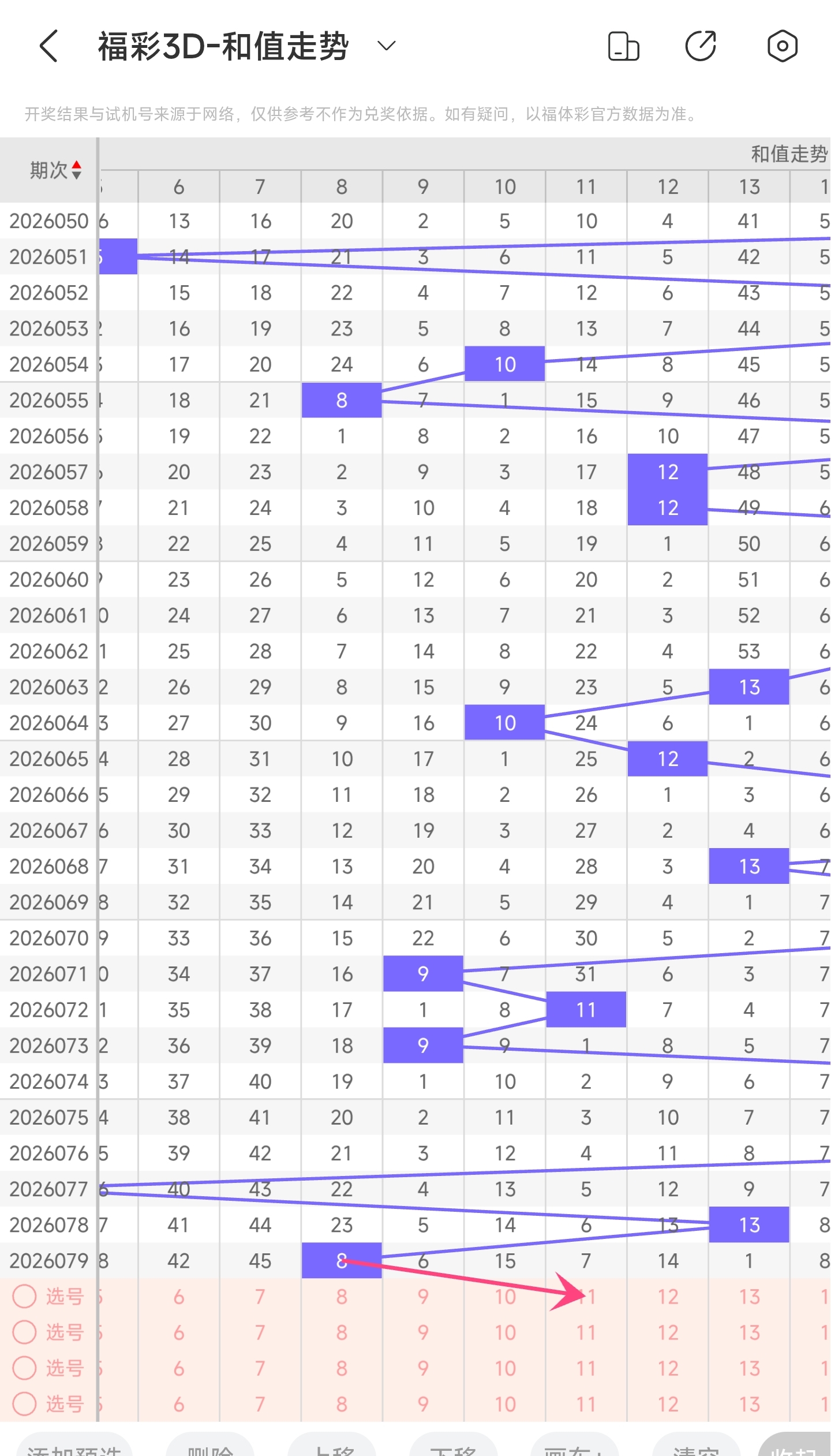 一、通过和值走势分析: