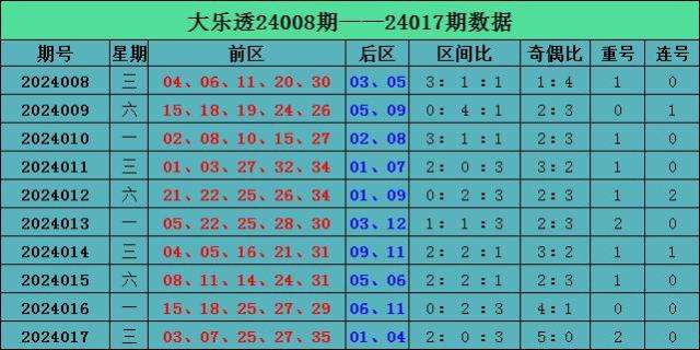 上期开奖:大乐透第2024017期奖号为:03 07 25 27 35+01 04。。