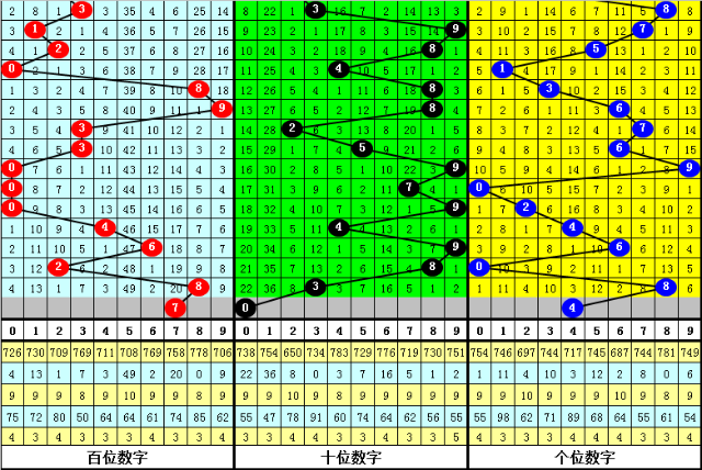 十位:上期奖号开出小号奇数:3,统计连续7期奖号,该位分别出现:大号奇数:9、大号奇数:7、大号奇数:9、小号偶数:4、大号奇数:9、大号偶数:8、小号奇数:3,其中小号走势较冷,偶数走势较冷,本期十位看好开出小号偶数出现。