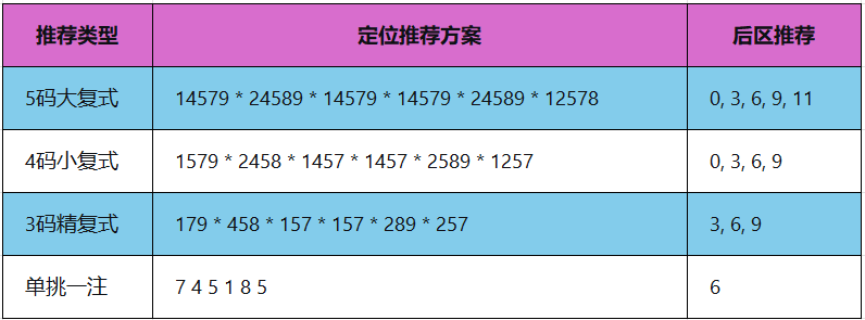 后区推荐:0, 3, 6, 9, 11