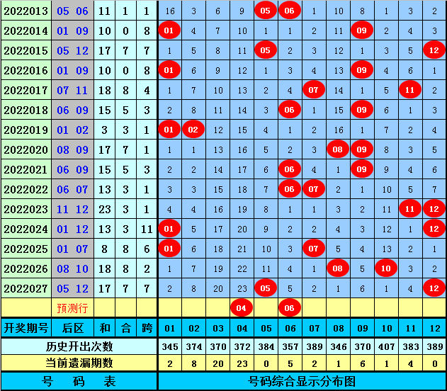 后区第二位推荐:在连续5期开奖中分别出号:12、12、07、10、12,均值为10。6,其中偶数奖号表现活跃,本期预计偶数号码继续热出,关注号码06。