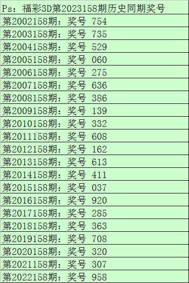 财迷福彩3D第2023158期综合推荐:
