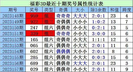 上期回顾:上期开奖奖号为029,类型:组六,偶偶奇,小小大,2:0:1,和值11,跨度9。