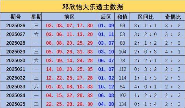 036期邓欣怡大乐透预测奖号:奇偶比推荐