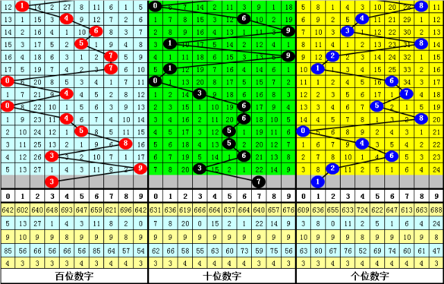 百位号码奇偶比为3:2,奇数号码表现相对较热,本期预计奇数号码再出;大小比为2:3,小号表现活跃,本期预计开出小号。