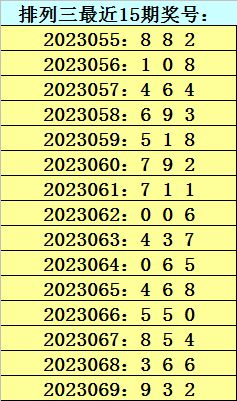 四叔体彩排列三第2023070期推荐: