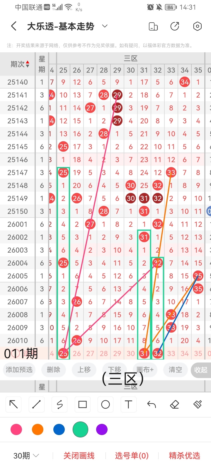 通过以上对上期的简单回顾,下面进入大乐透第2026011期(下面简称本期)的选号分析: