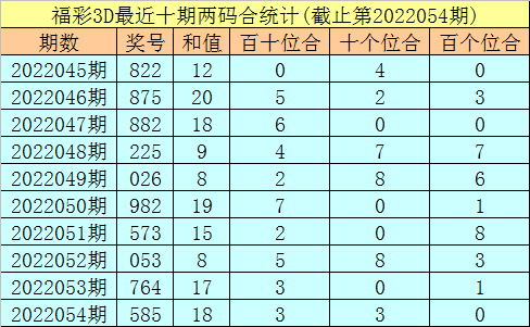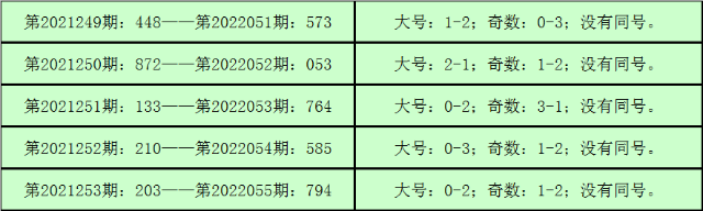 所以,3D第2022047期开出奖号:882,其大小比为2:1,奇偶比为0:3,012路比为0:0:3,与3D第2022056期奖号可能有同号。