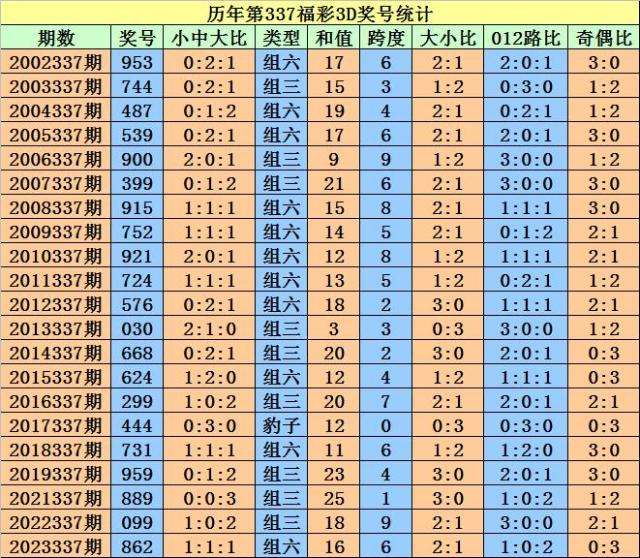 开奖回顾:福彩3D第2023337期奖号为:862。