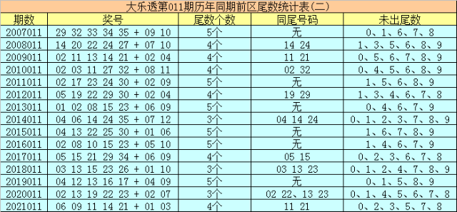 本期为大乐透第2022011开奖,历史上大乐透第011期已开出了15次奖号了: