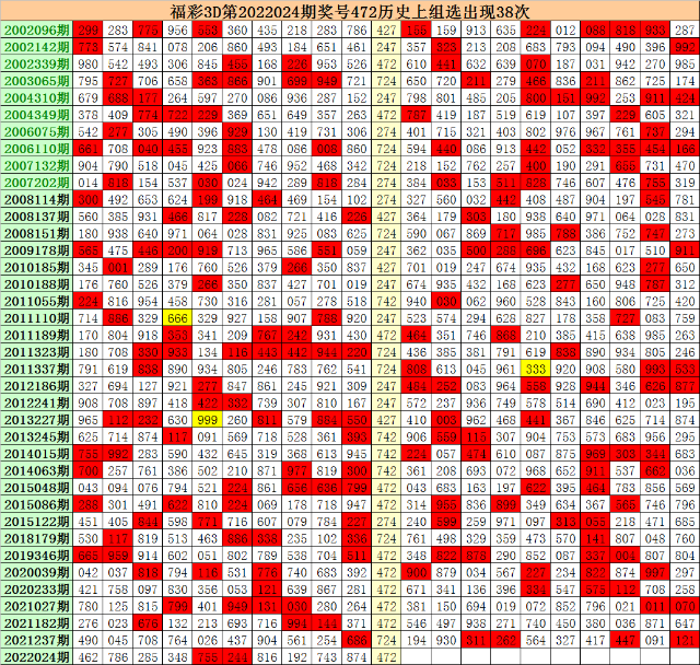 上期回顾:福彩3D第2022024期开出奖号472。