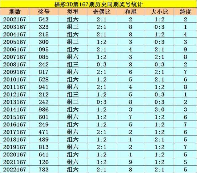 福彩3D历年第167期同期奖号为:543 323 215 300 095 085 242 817 528 941 212 242 986 601 249 471 489 813 641 126 783。