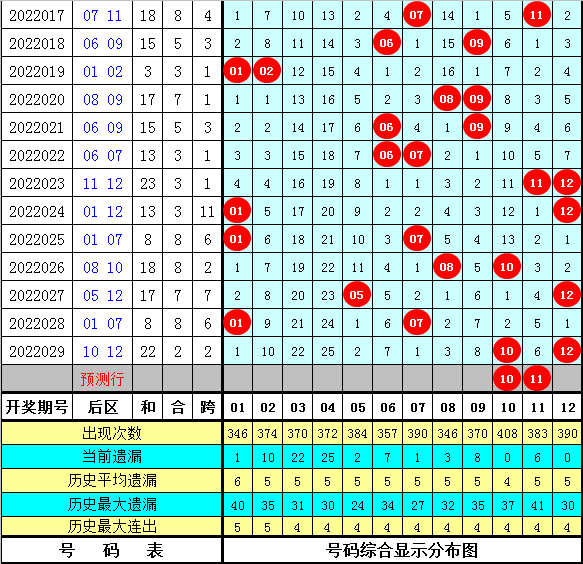 大乐透历年同期第030期后区尾数大小比为15:15,尾数奇偶比为16:14,本期后区大范围参考03、08、09、10、11。
