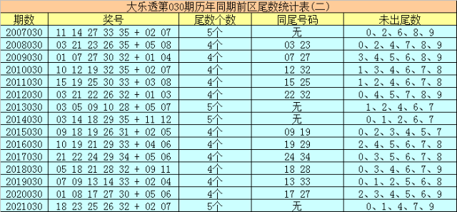 最后,在历史同期第030期开奖中,前区后三位尾数奇偶比为25:20,偶数尾数开出较少,今年同期注意偶数尾数回补,本期前区后三位尾数关注2、3、6。