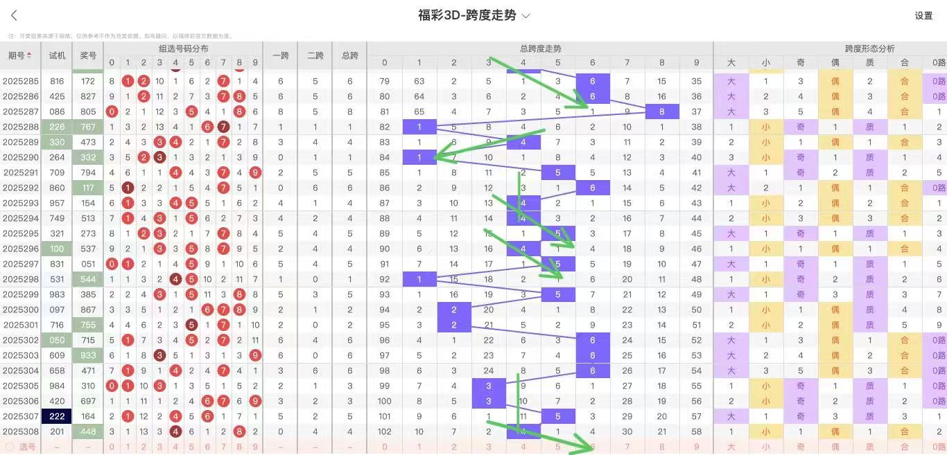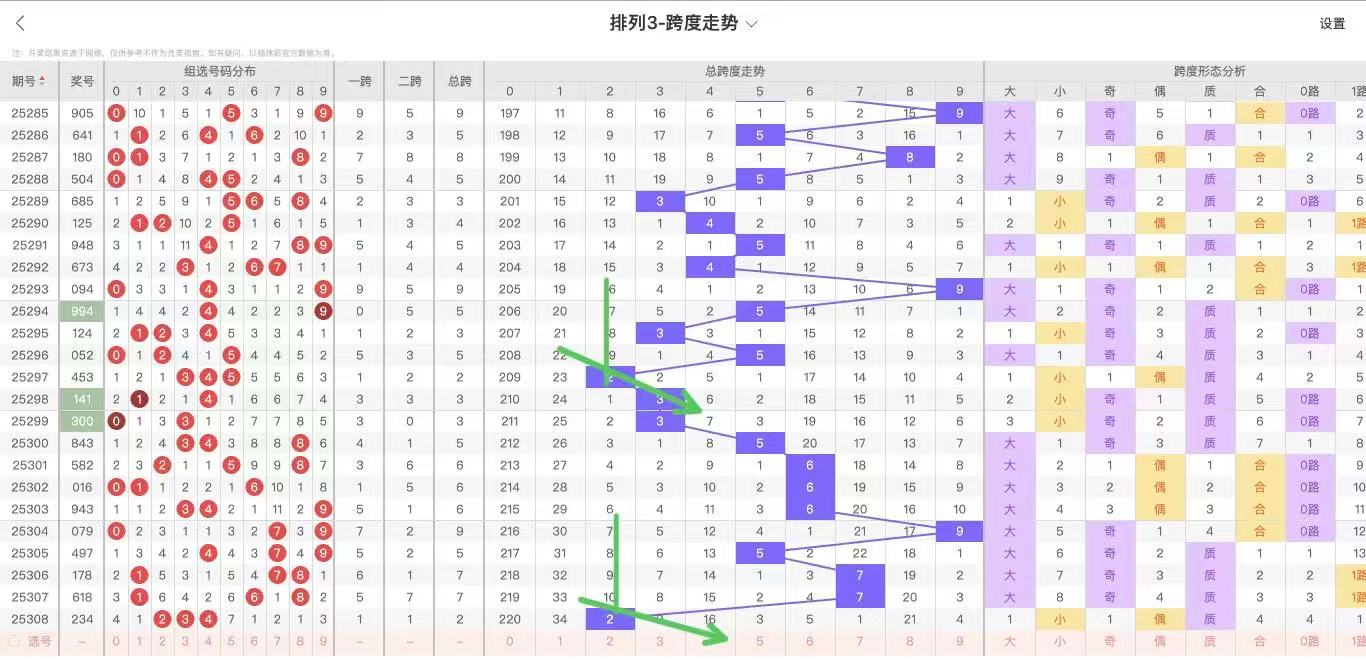 10期内跨度走势为:3-5-6-6-6-9-5-7-7-2,10期内大小跨比:6:4,奇偶跨比6:4,百期内跨度2共开出的14次,下期数据:6 7 8 9 5 7 4 5 5 7 3 5 3 近期度较热,考虑跨度2开出后容易出大跨度,近期大小规律下小:奇:质,所以接下来继续小跨,奇跨度表现!